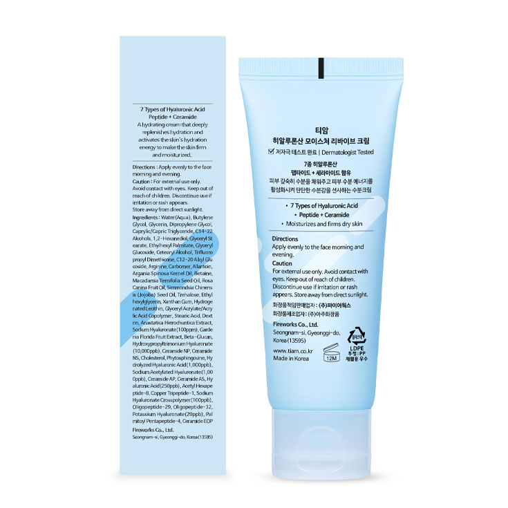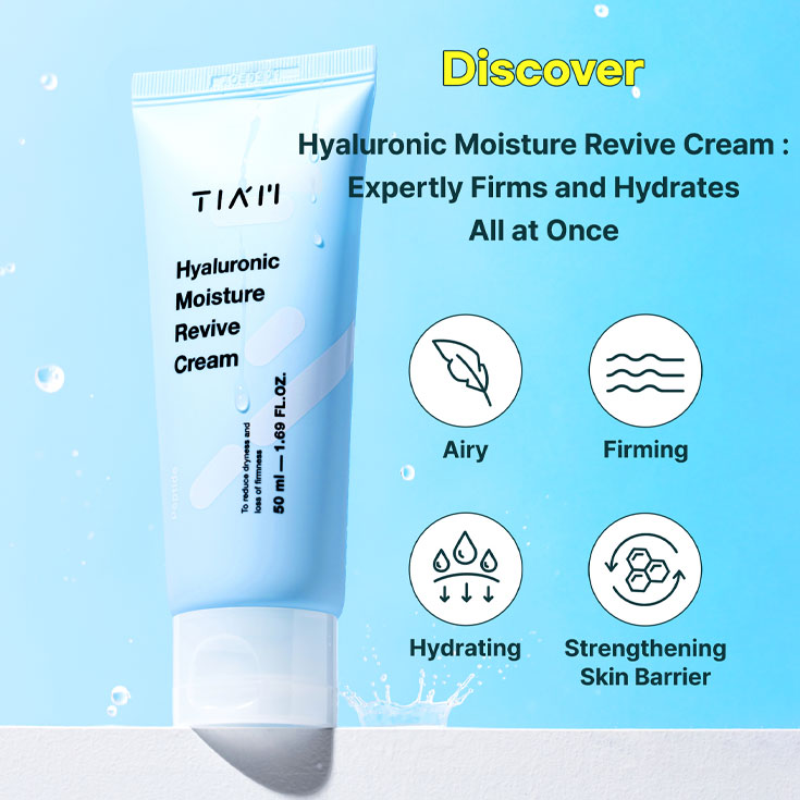 کرم TIAM Hyaluronic Moisture Revive Cream یک مرطوبکننده پیشرفته است که با استفاده از ۷ نوع هیالورونیک اسید با وزنهای مولکولی مختلف طراحی شده تا رطوبت را در لایههای مختلف پوست تأمین کند و پوست را بهصورت عمیق و چندلایه آبرسانی نماید.